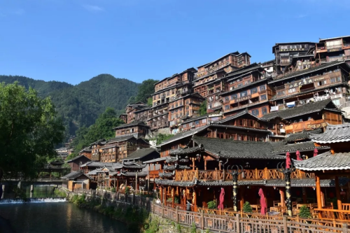 向“黔”進(jìn),必進(jìn)鎮(zhèn)遠(yuǎn)。舞陽河呈S型穿城而過,將鎮(zhèn)遠(yuǎn)古城一分為二,府衛(wèi)城各有故事,各有精彩。自古是軍事及商業(yè)要塞的鎮(zhèn)遠(yuǎn),與很多古鎮(zhèn)不同,臨街的樓房雖是新式樓房,但仍然保留著古典“徽派”的建筑風(fēng)格。順著老街的小巷觀賞古鎮(zhèn)的古老建筑,一定要見識下傳說中的“歪門斜道”。這里的民居大門的朝向都是歪的,不與街道巷道平行,而且巷道也是七扭八拐的。這特別的建筑風(fēng)格據(jù)說是來自風(fēng)水師的告誡,目的是為了藏風(fēng)聚氣。也似乎讓鎮(zhèn)遠(yuǎn)古鎮(zhèn)更有歷史韻味,讓人嘆為觀止。